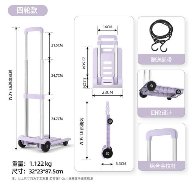 折疊小拉車 摺疊手推車 買菜車 購物車 行李車 便攜拖車 搬運小拉車 取快遞神器 送綁帶 三檔調節 輕便耐重 60KG