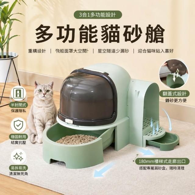 星空隧道貓砂盆 全罩式防潑砂 抽屜式貓廁所 大空間防落砂 貓便盆 附貓砂鏟