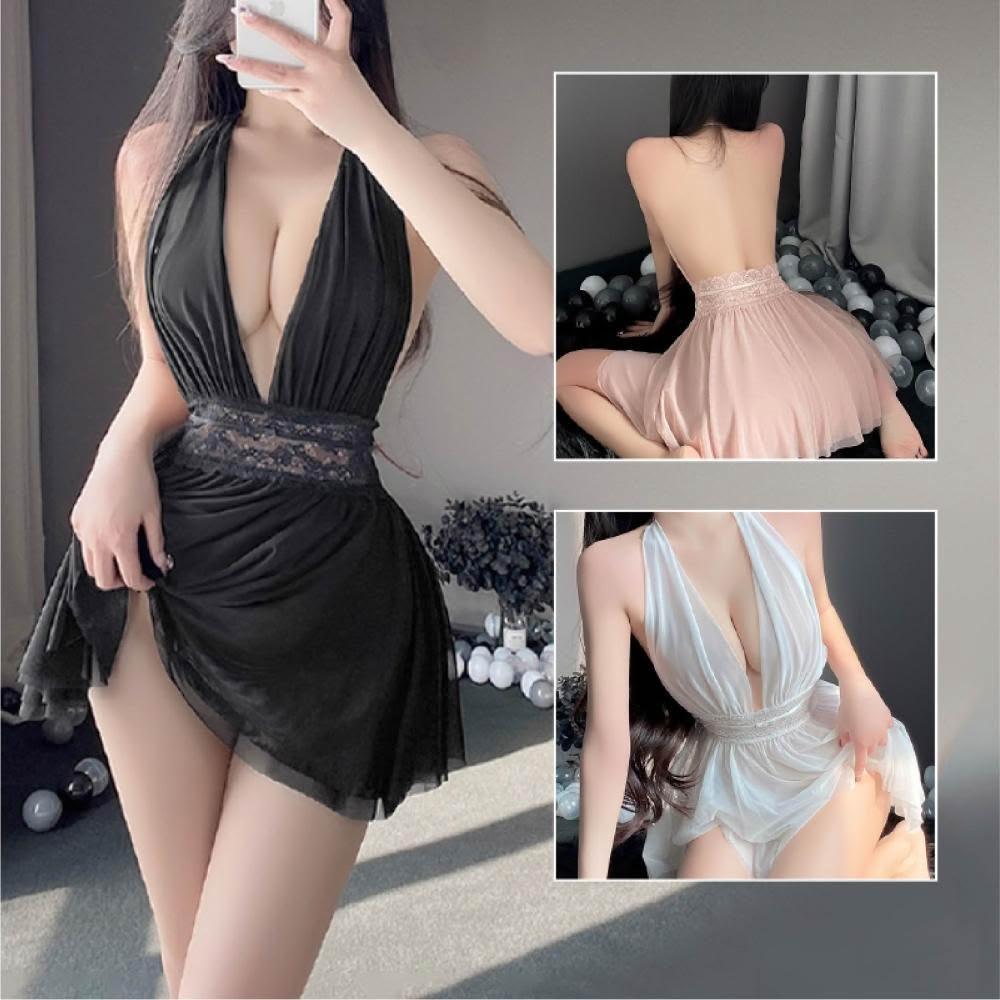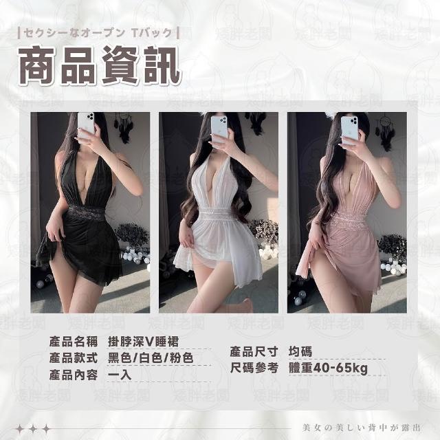 矮胖老闆掛脖深V睡裙 24H出貨 薄紗睡裙 垂吊睡裙 V領 法式睡衣 蕾絲收腰 露背裙 深V吊帶 吊帶裙 睡衣 連身裙