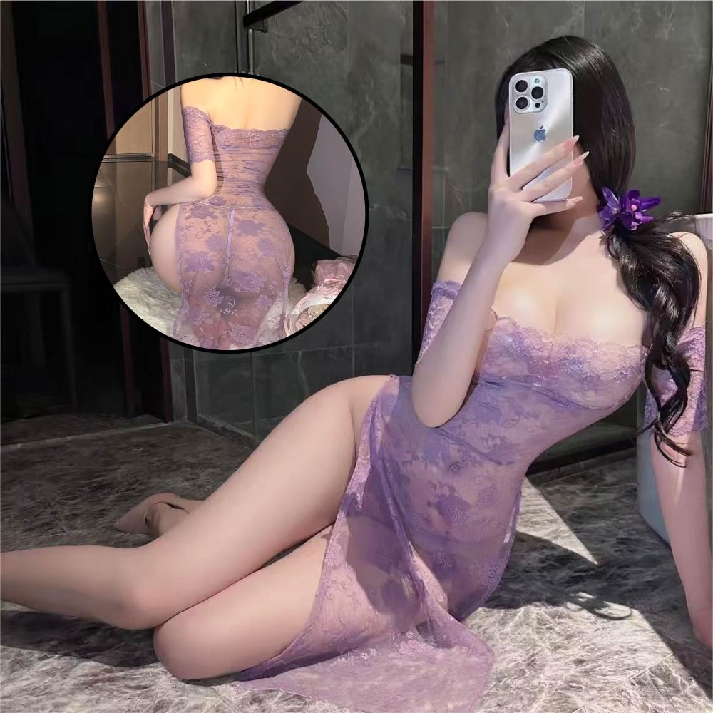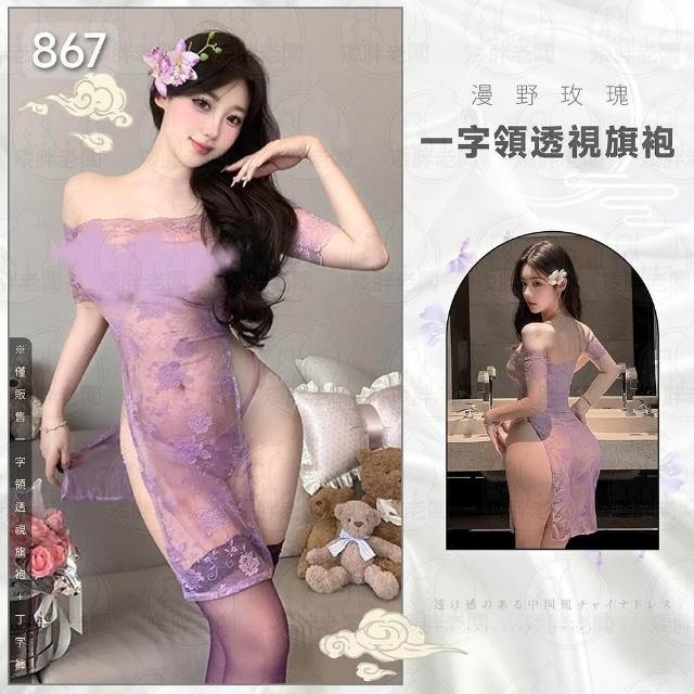 矮胖老闆漫野玫瑰一字領透視旗袍 24H出貨 旗袍 套裝 一字領 睡裙 長裙 一字領旗袍 一字領長裙 蕾絲 透明 睡裙 睡衣