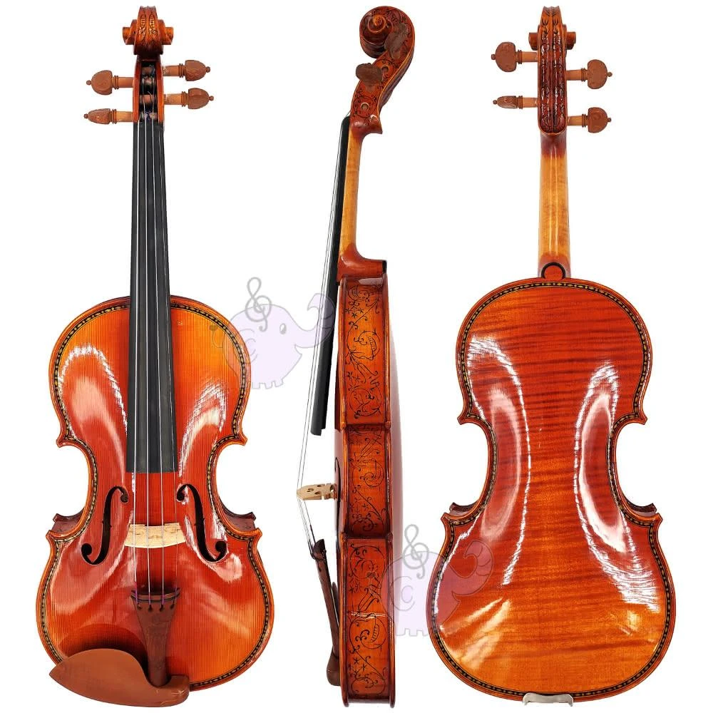 台灣品牌 Elegant C1150 手工仿古雕花小提琴-全配