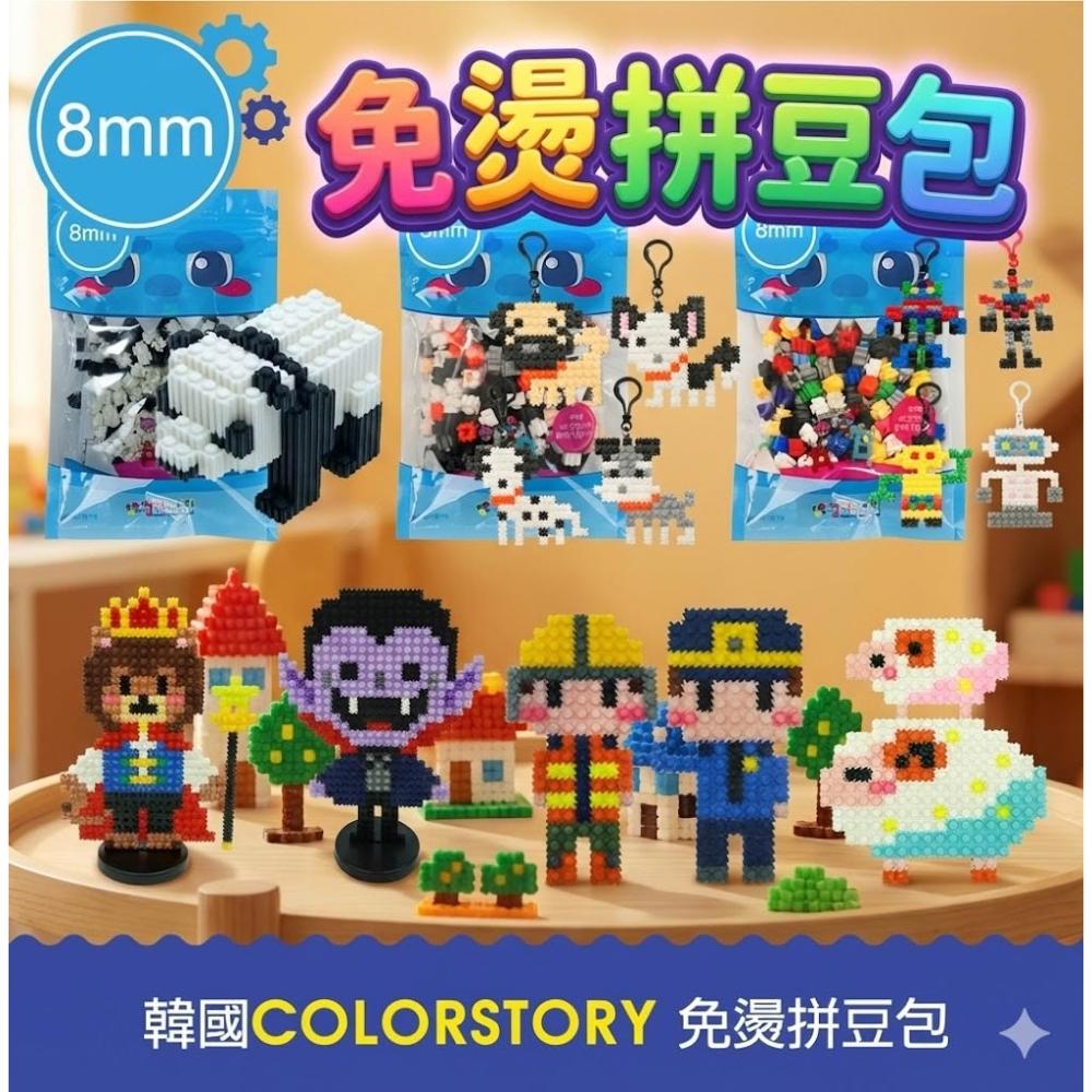 韓國 Color Story 8mm 10mm 拼豆 免燙拼豆 訓練手眼協調、專注力 熊貓 機車人 小恐龍