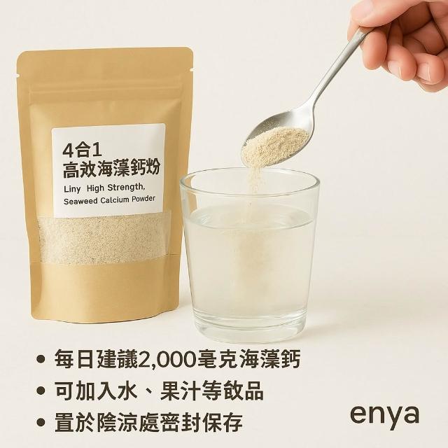 enya 恩亞4合1高效海藻鈣粉 約250g/袋 (1+1 超值組) |高純度愛爾蘭海藻鈣+海洋鎂+維生素D+K2 補鈣營養添加首選 素食可