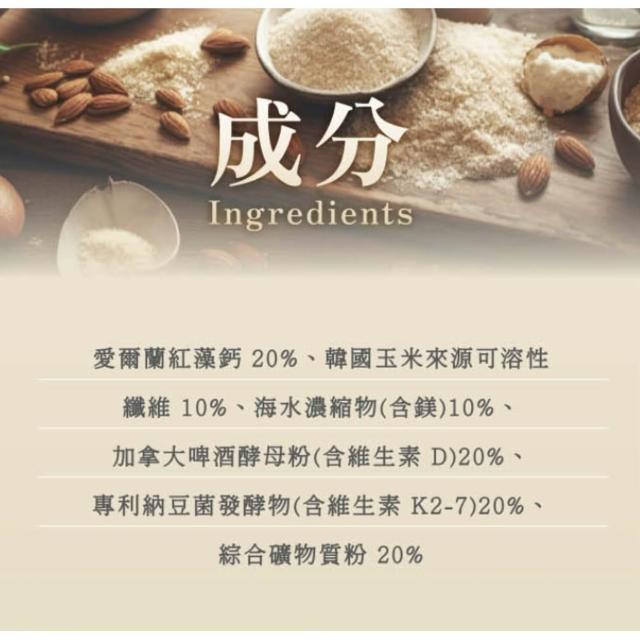 enya 恩亞4合1高效海藻鈣粉 約250g/袋 (1+1 超值組) |高純度愛爾蘭海藻鈣+海洋鎂+維生素D+K2 補鈣營養添加首選 素食可