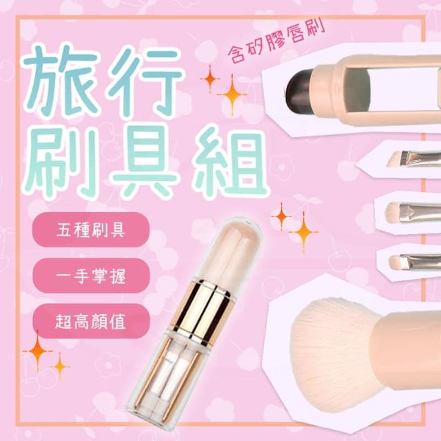 五合一化妝刷 旅行刷具組 刷具 化妝刷 刷具組 眼影刷 化妝刷具組 矽膠唇刷 迷你刷具組 旅遊綠洲