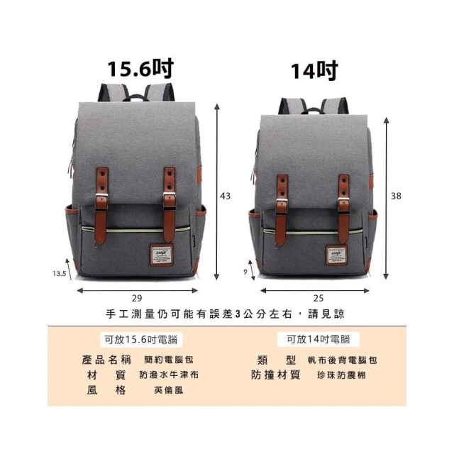 15-16吋 英倫風筆電後背包(電腦後背包 筆電後背包 大容量後背包 後背包 防水後背包 15-16吋 電腦包 筆電包)