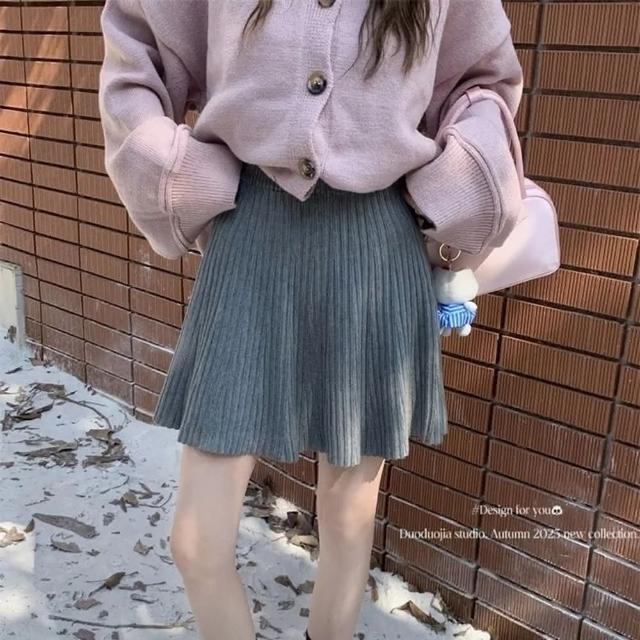 Ying fashion shop柔軟針織 A字半身裙 A字短裙 針織短裙 高腰顯瘦 百搭鬆緊腰 針織A字半身裙
