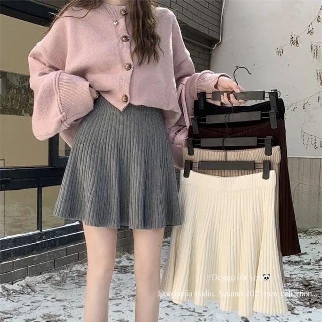 Ying fashion shop柔軟針織 A字半身裙 A字短裙 針織短裙 高腰顯瘦 百搭鬆緊腰 針織A字半身裙