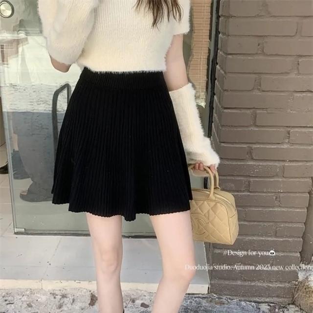 Ying fashion shop柔軟針織 A字半身裙 A字短裙 針織短裙 高腰顯瘦 百搭鬆緊腰 針織A字半身裙