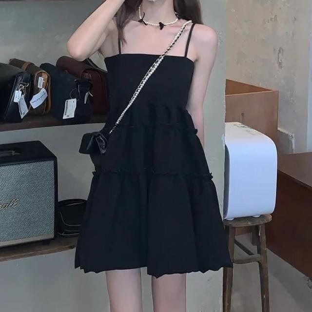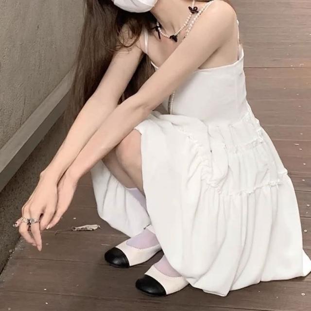 Ying fashion shop夏季新款 法式蓬蓬裙 純慾小清新 氣質 吊帶洋裝 高級感短裙 收腰連衣裙 吊帶洋裝