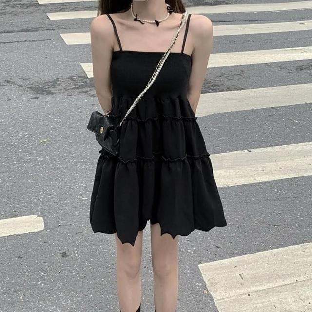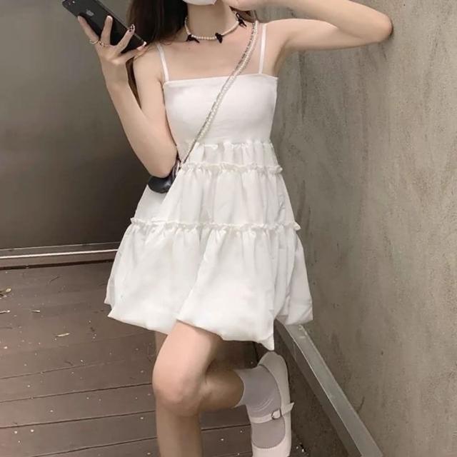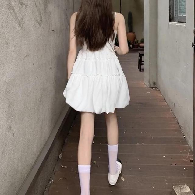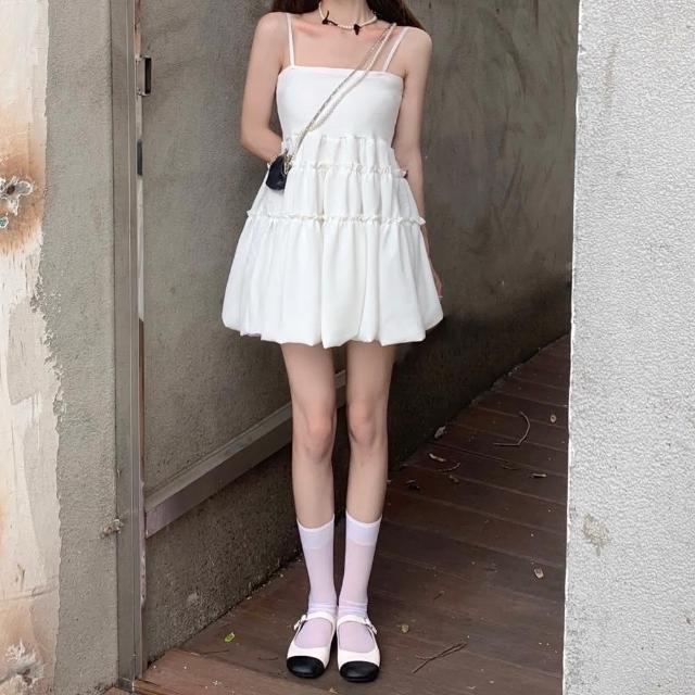 Ying fashion shop夏季新款 法式蓬蓬裙 純慾小清新 氣質 吊帶洋裝 高級感短裙 收腰連衣裙 吊帶洋裝