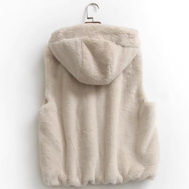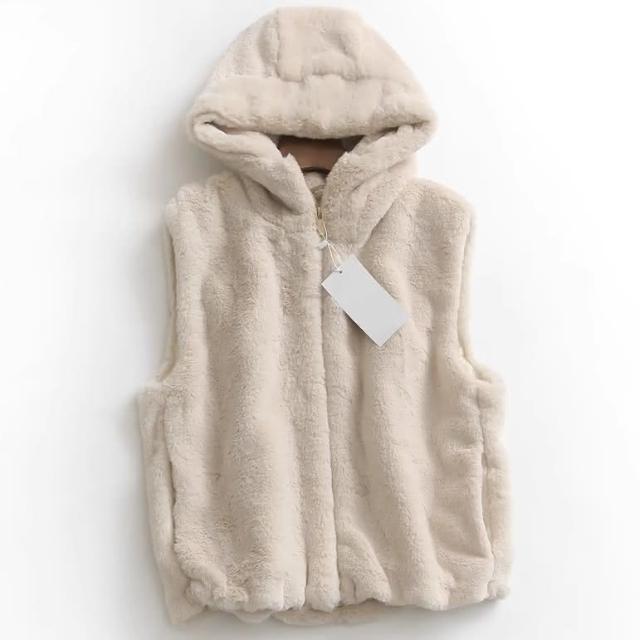 Ying fashion shop秋冬必備馬甲外套 寬鬆百搭 毛絨絨背心外套 連帽口袋拉鍊外套 水貂絨柔軟背心外套