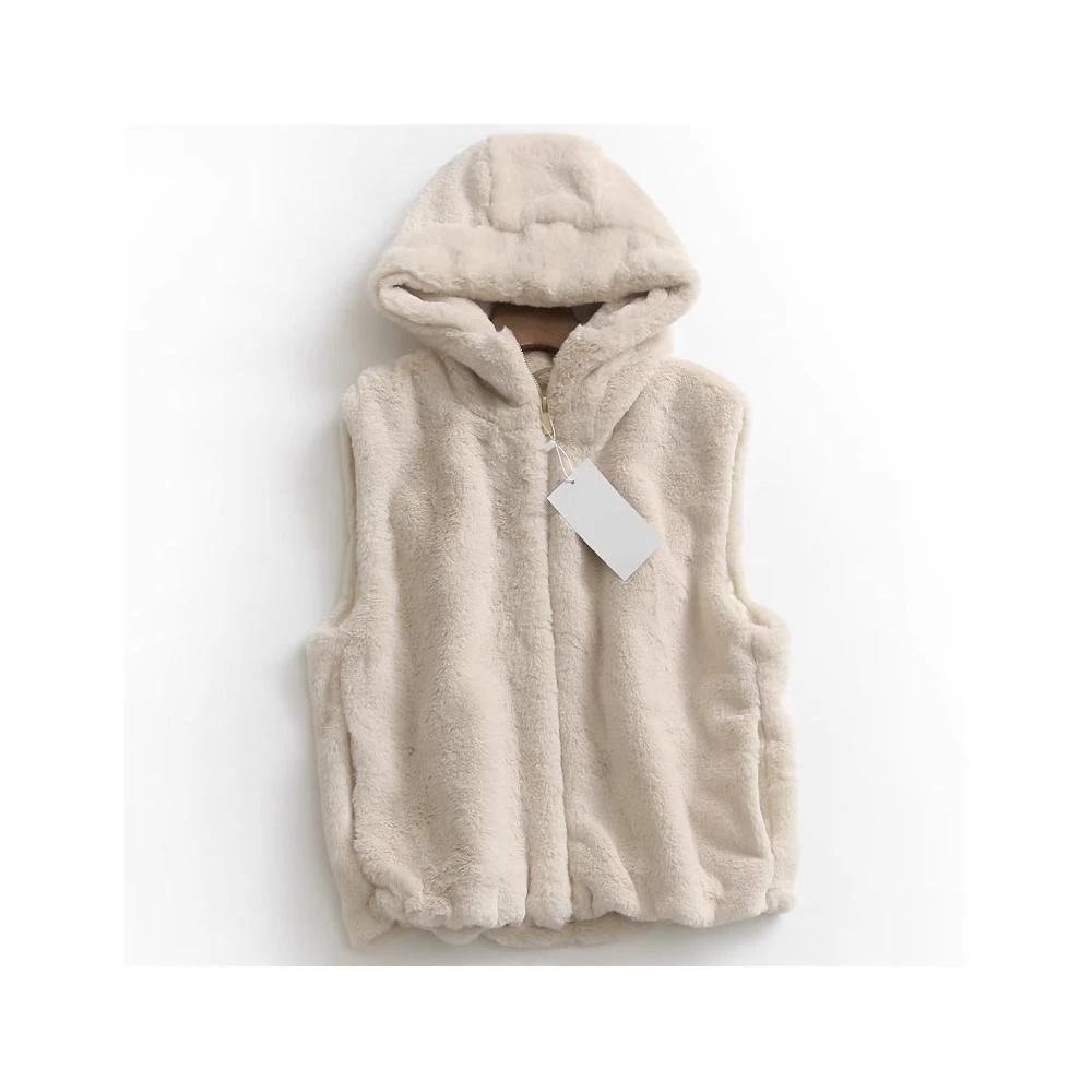 Ying fashion shop秋冬必備馬甲外套 寬鬆百搭 毛絨絨背心外套 連帽口袋拉鍊外套 水貂絨柔軟背心外套