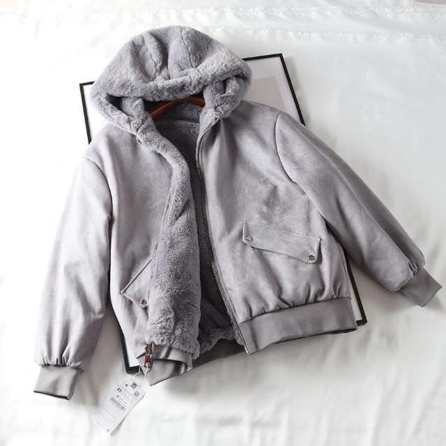 Ying fashion shop推爆款 Ying Fashion 秋冬新款 鹿皮絨毛 寬鬆羊羔毛外套 加絨加厚 保暖夾克外套 兩面穿 絨毛連帽外套
