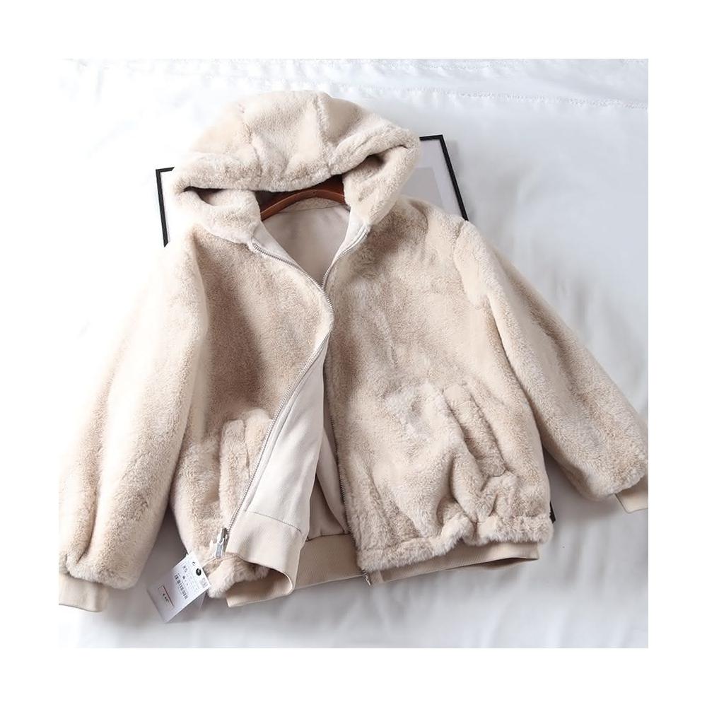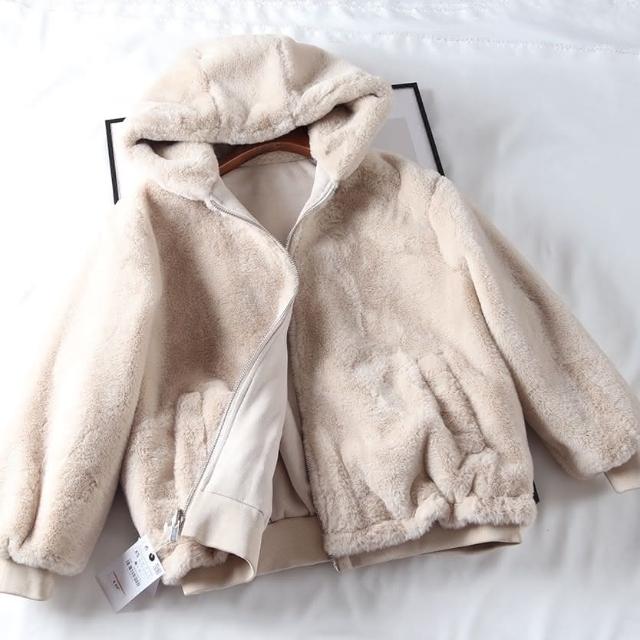 Ying fashion shop推爆款 Ying Fashion 秋冬新款 鹿皮絨毛 寬鬆羊羔毛外套 加絨加厚 保暖夾克外套 兩面穿 絨毛連帽外套
