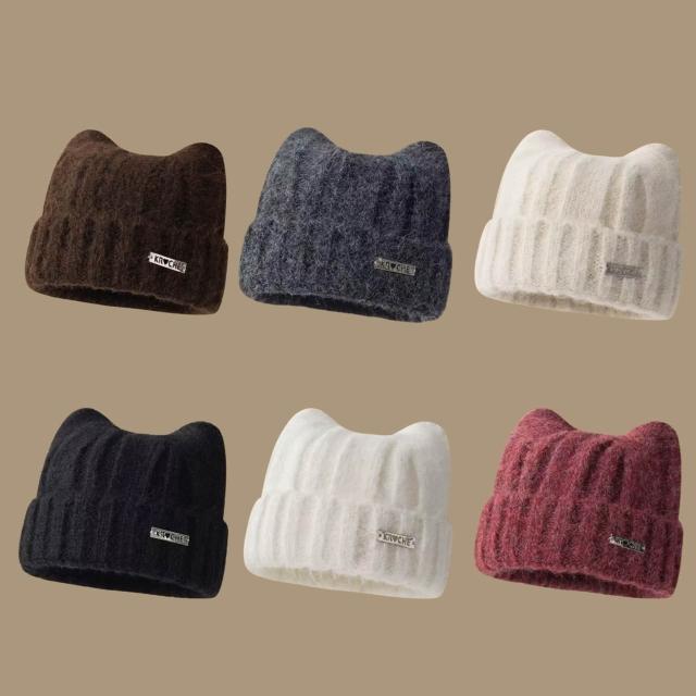 Ying fashion shop現貨 Ying Fashion Shop 超熱賣!貓耳帽 羊毛毛帽 大頭圍 可愛保暖冷帽 顯臉小 護耳毛帽 防寒保暖毛帽