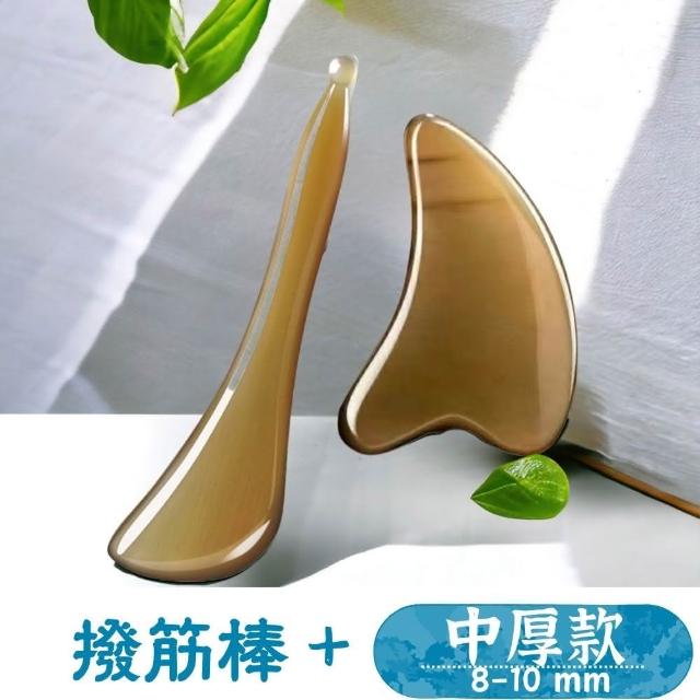 YoYo小舖 牛角刮痧板 撥筋棒 兩件組(加厚天然氂牛手工打造)