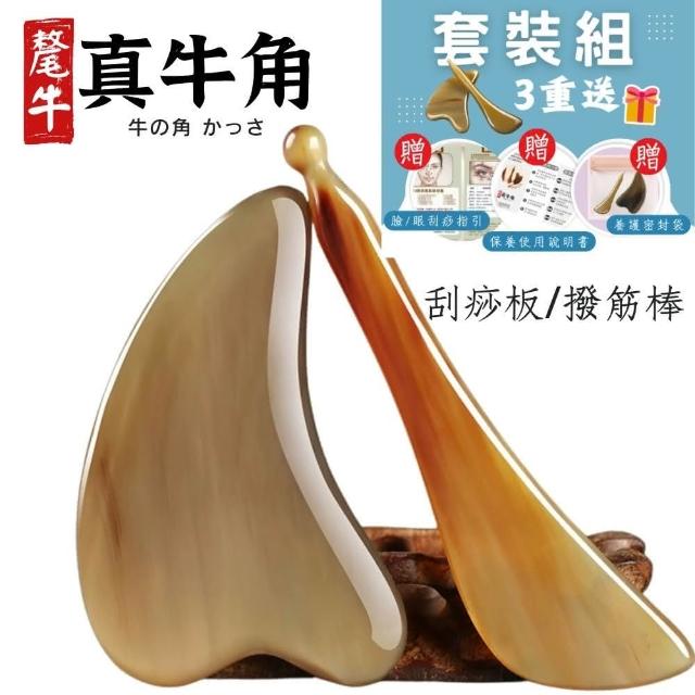 YoYo小舖 牛角刮痧板 撥筋棒 兩件組(加厚天然氂牛手工打造)