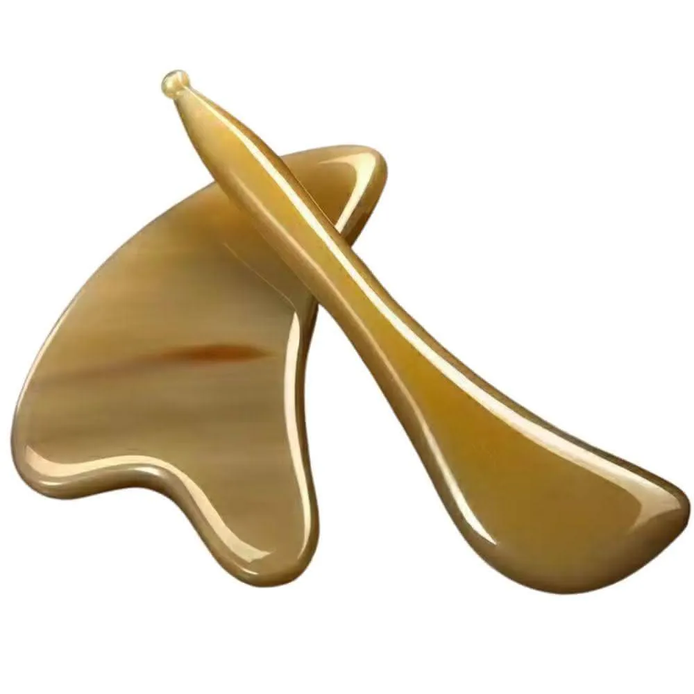 YoYo小舖 牛角刮痧板 撥筋棒 兩件組(加厚天然氂牛手工打造)