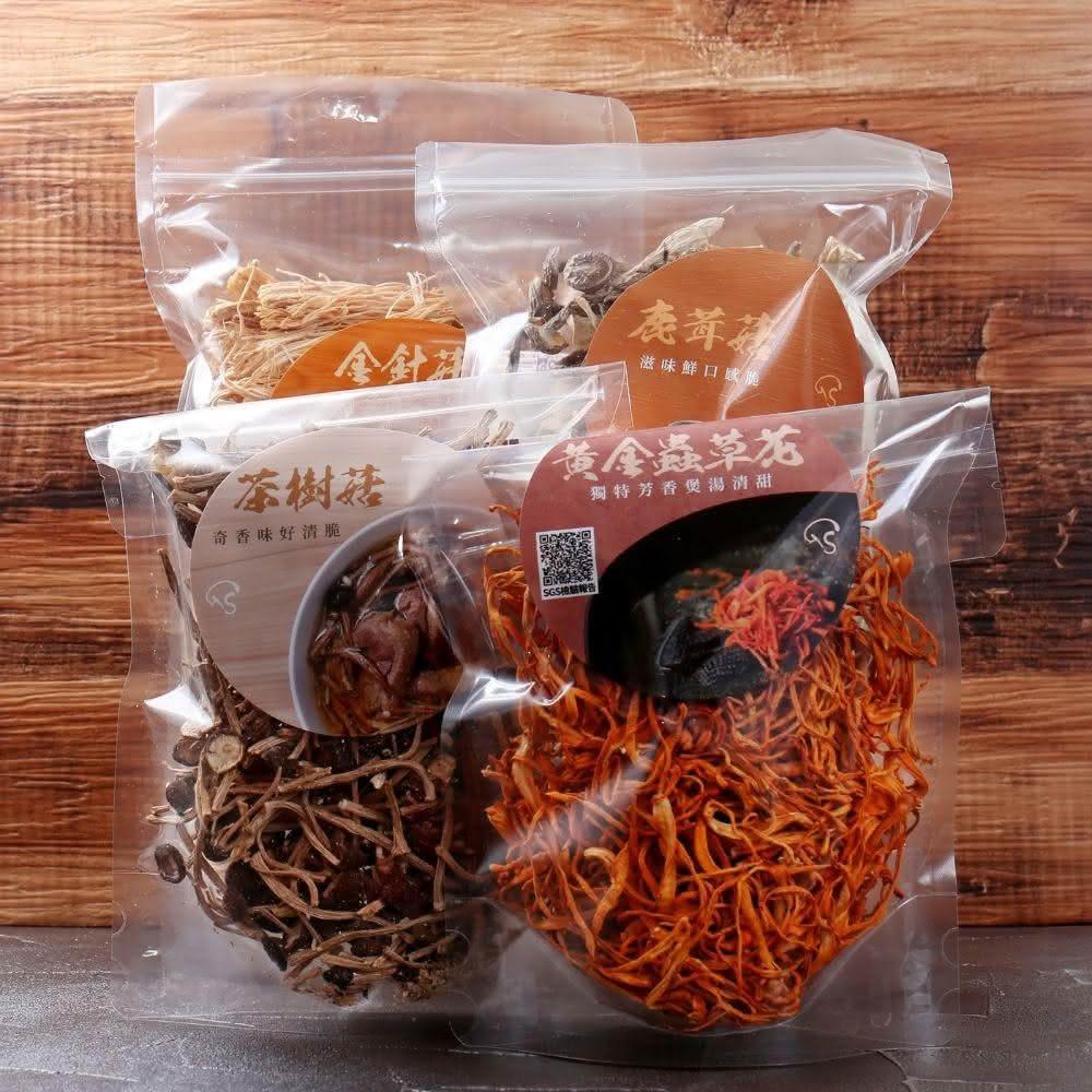 菇神超值4款組合包乾燥金針菇/鹿茸菇/大厚菇/黃金蟲草