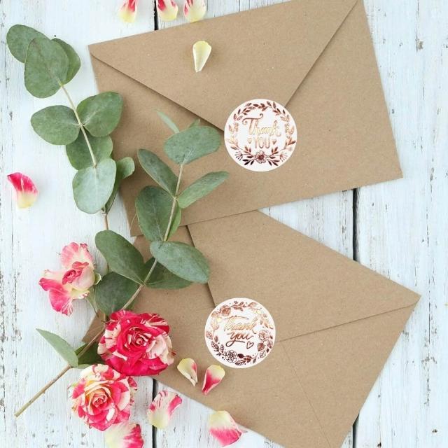 《巧緻》 燙玫瑰金 感謝 thank you 貼紙 500貼 直徑2.5cm 3.8cm 貼紙 燙金