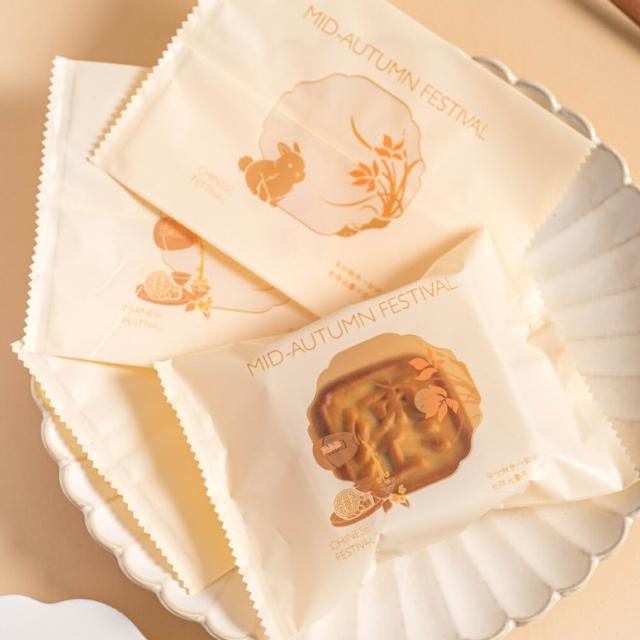 花下兔 米色底 亮面 熱封袋 中秋節包裝 月餅包裝袋 蛋黃酥包裝袋 機封袋 花下兔月餅袋