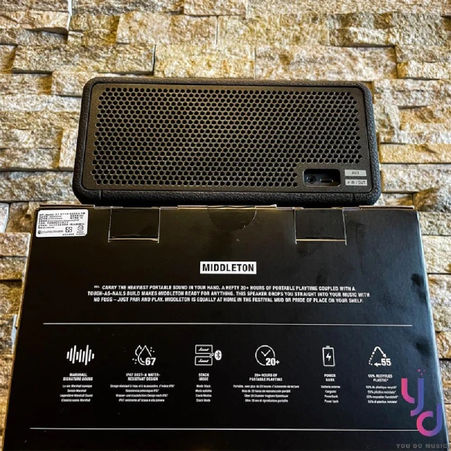 MarshallMarshall Middleton 〔黑金色/奶油白〕 藍芽 喇叭 充電式 防水防塵 輕巧便攜 公司貨 18個月保(marshall middleton 藍牙 音響)