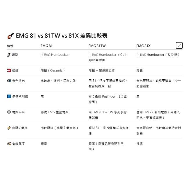 EMG 81 81TW 81X 主動式 雙線圈 拾音器 美國製 免焊接 經典型號 可切單 亞都代理