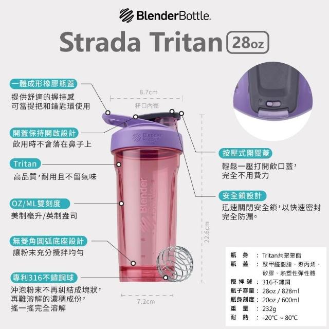 Blender BottleBlenderBottle 按壓式環保杯 Strada Tritan 28oz 附攪拌球 搖搖杯 健身運動水壺 台灣現貨