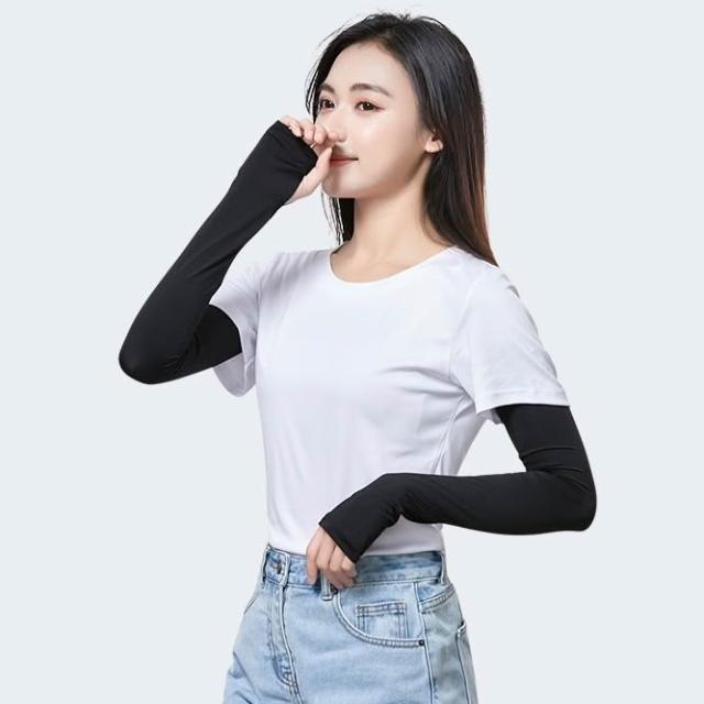 台灣製造 純色涼感防曬袖套 指套露指型 遮陽 防曬 抗紫外線 露營 運動 騎車 釣魚