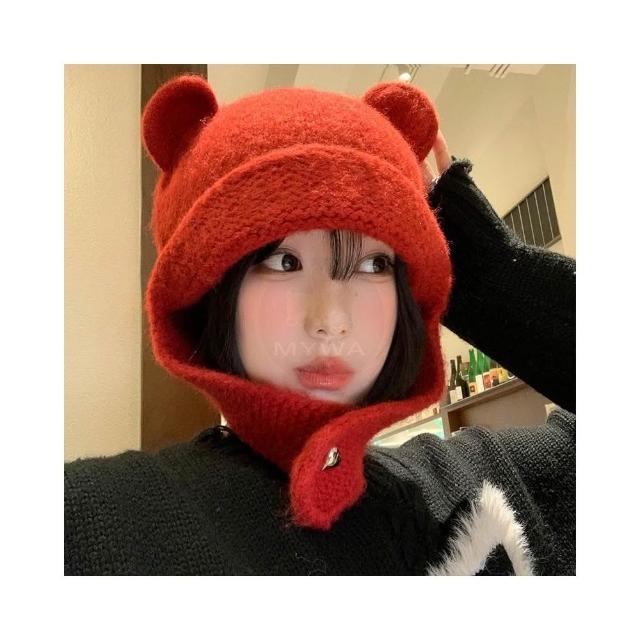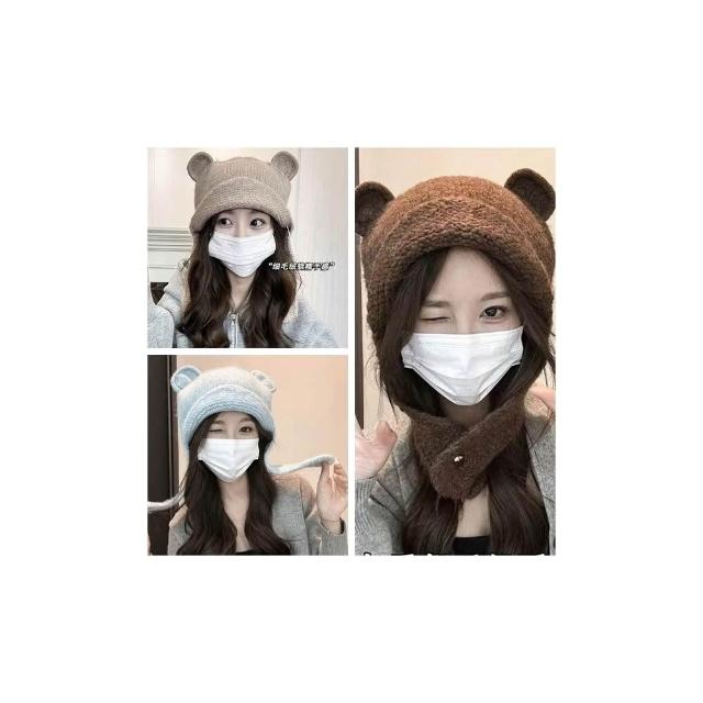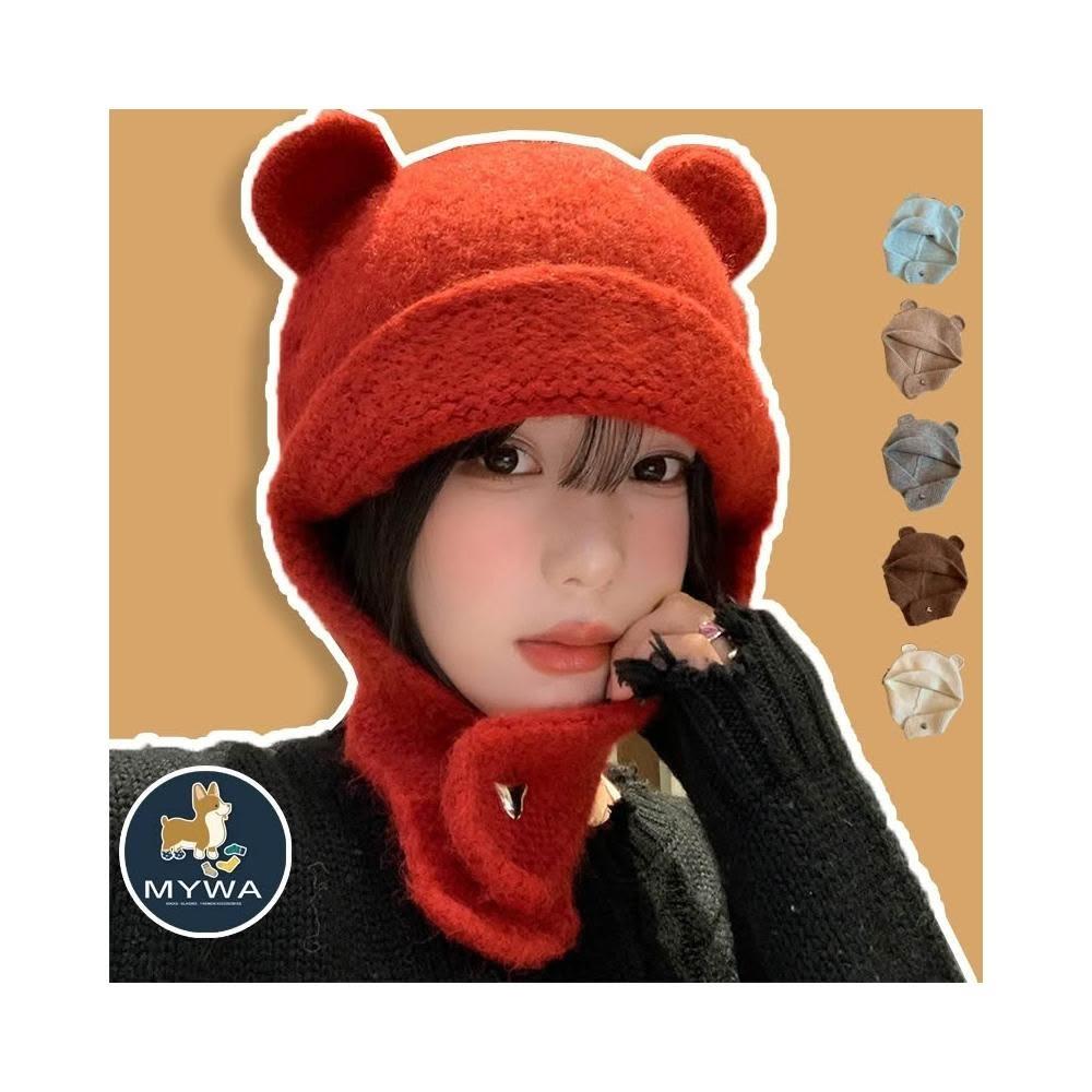 MyWa™️ 小熊耳朵針織毛帽 秋冬保暖帽 護耳帽 圍脖 包頭帽 寒流必備 台灣現貨 H76