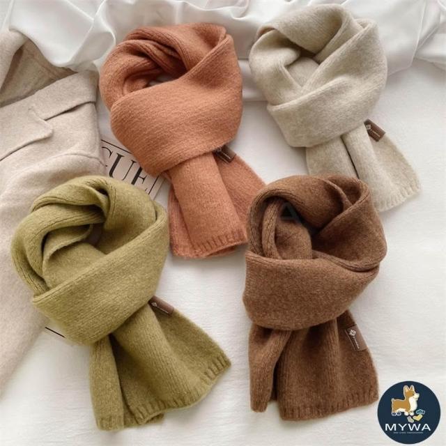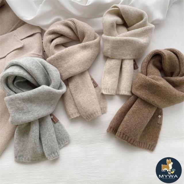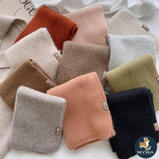 MyWa™️奶茶色系混羊毛法式圍巾 針織圍脖 韓國流行款 浪漫純色 ins風百搭款 台灣現貨