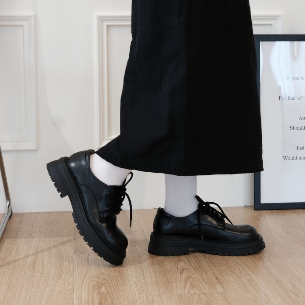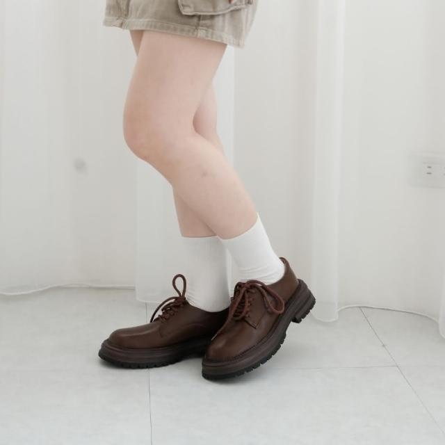 WYPEX現貨 黑39 棕38 39 圓頭厚底真皮綁帶小皮鞋女鞋(2色)