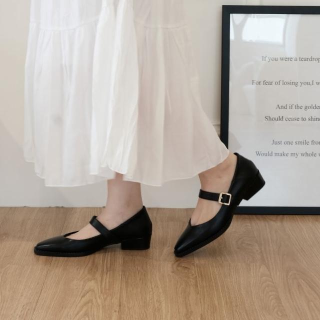 WYPEX現貨+預購 小方頭真皮低跟女鞋 氣質瑪莉珍鞋(2色)