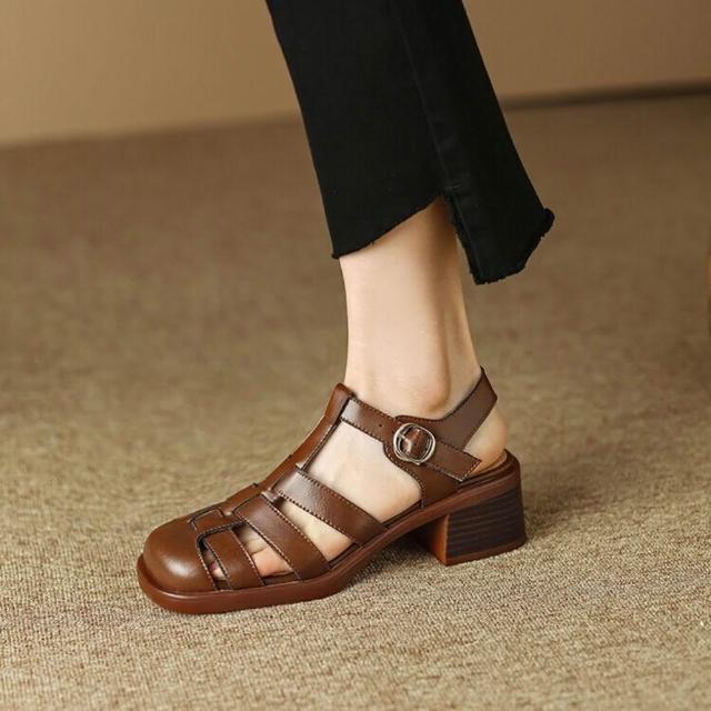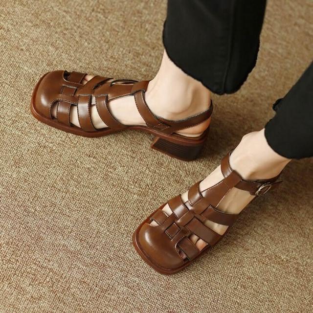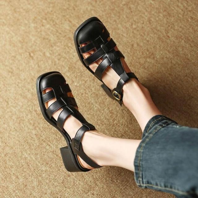 WYPEX現貨+預購 復古粗跟真皮羅馬涼鞋女鞋(2色)