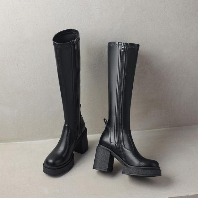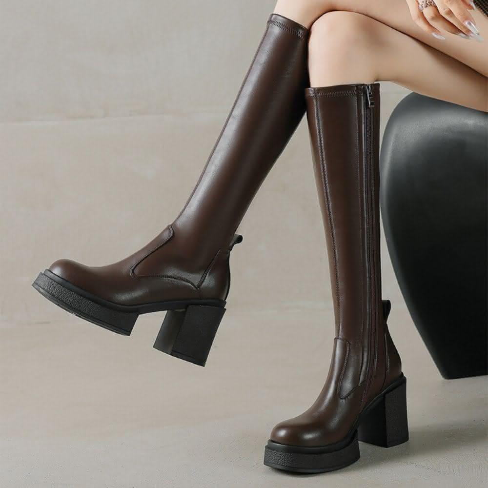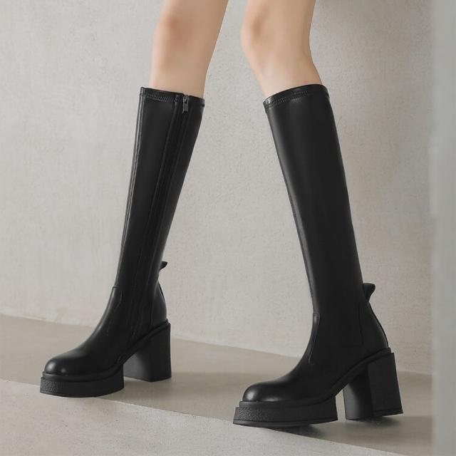 WYPEX現貨+預購 時髦粗跟真皮長靴女鞋女靴 厚底高跟顯瘦長筒靴-2色