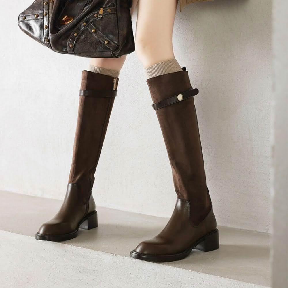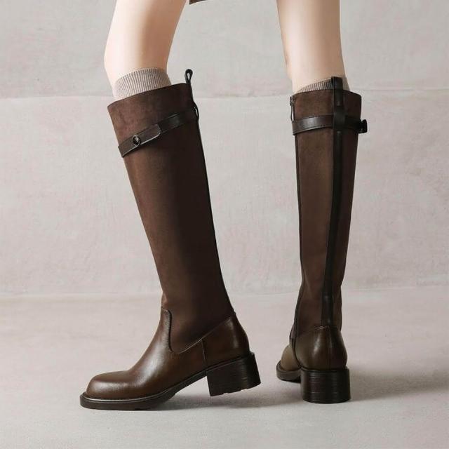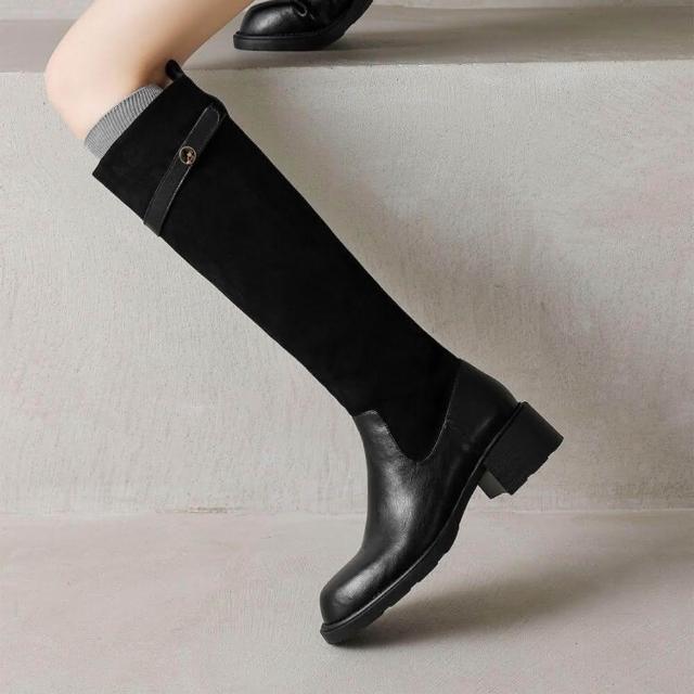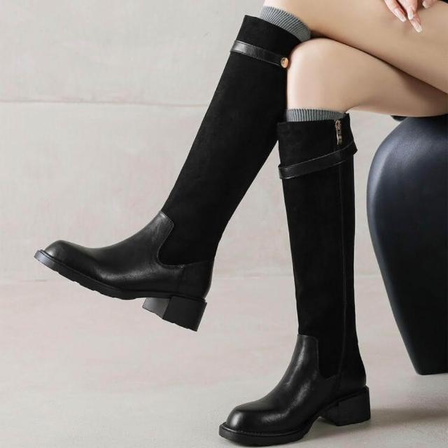 WYPEX時尚拼接真皮長靴女鞋女靴
