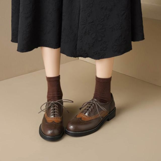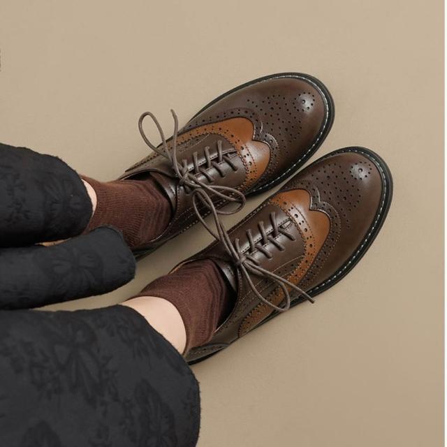WYPEX現貨+預購 英倫拼色雕花真皮牛津鞋女鞋 綁帶小皮鞋