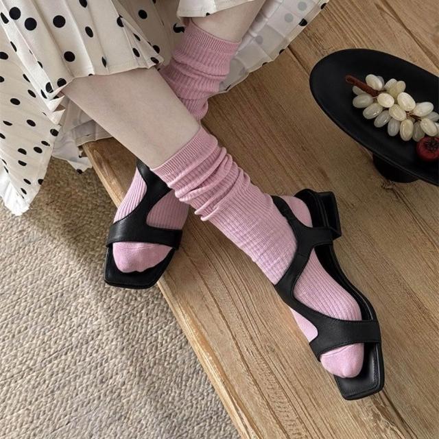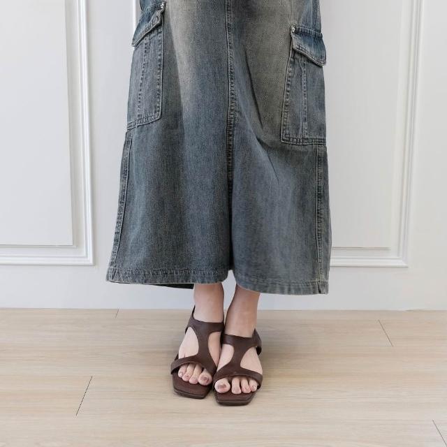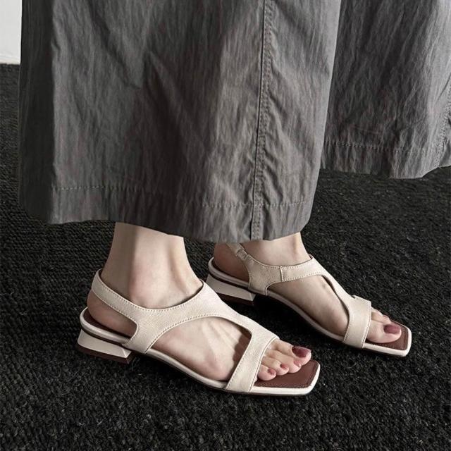 WYPEX現貨+預購 方頭羅馬真皮涼鞋女鞋 露趾低跟涼鞋