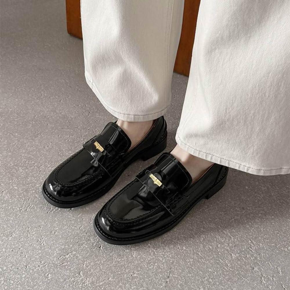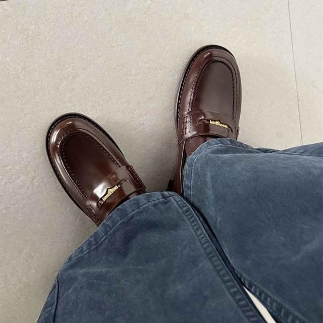WYPEX時尚金幣低跟真皮樂福鞋女鞋小皮鞋(2色)