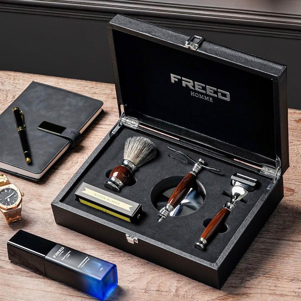 FREED免費客製化刻字 男士五刀式刮鬍刀禮盒豪華四件組(獨家紳士客製禮盒) 生日禮物 男友禮物 父親節禮物