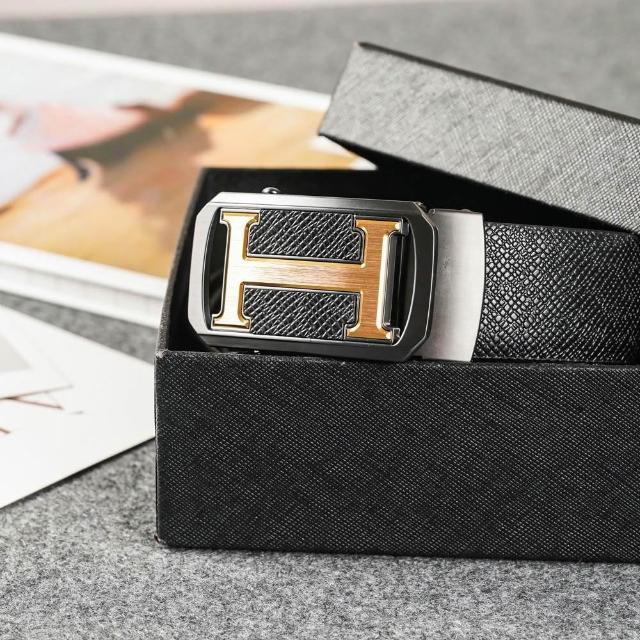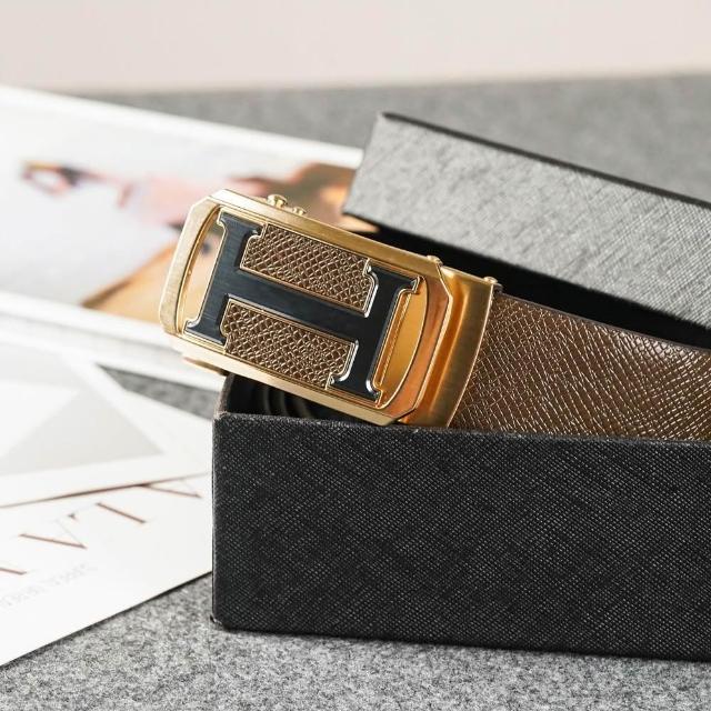 Bravomart大H字母扣頭 商務休閒 真皮皮帶 頭層牛皮 自動皮帶 生日禮物 男友禮物 父親節禮物