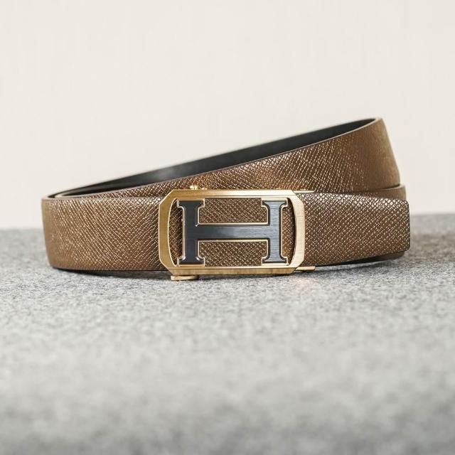 Bravomart大H字母扣頭 商務休閒 真皮皮帶 頭層牛皮 自動皮帶 生日禮物 男友禮物 父親節禮物
