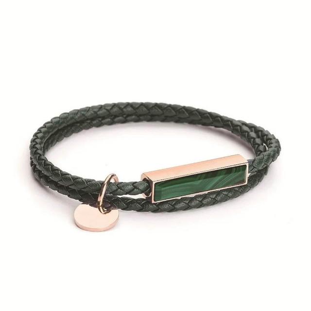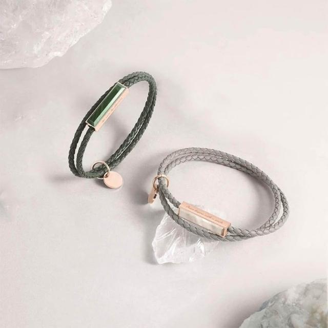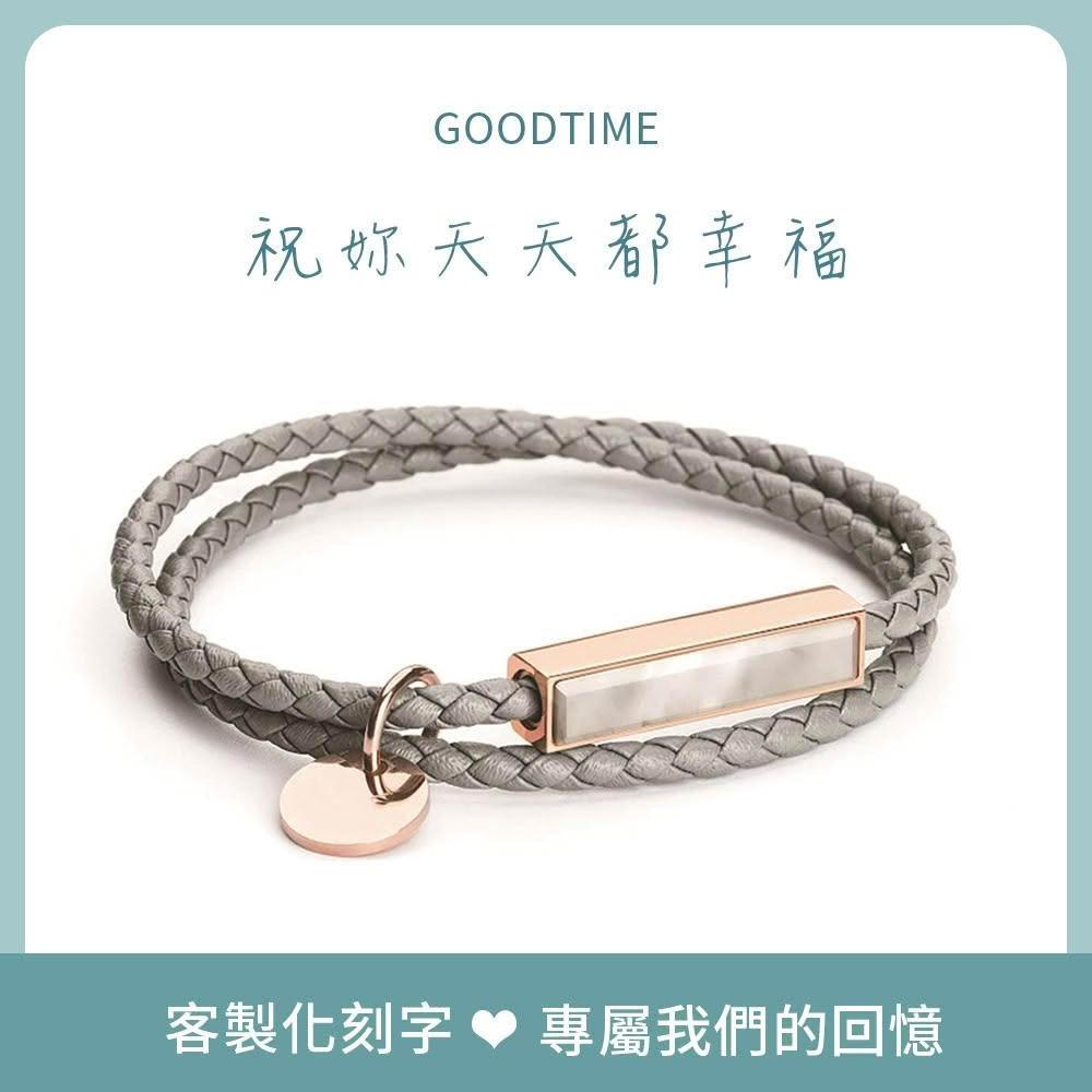 GOODTIME客製化刻字 手工編織雙圈玉石鑲嵌皮革手環 情侶手鍊 生日禮物 交換禮物 閨蜜禮物
