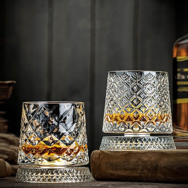 Bravomart浮雕水晶旋轉威士忌酒杯 商務送禮 生日禮物 喬遷禮物