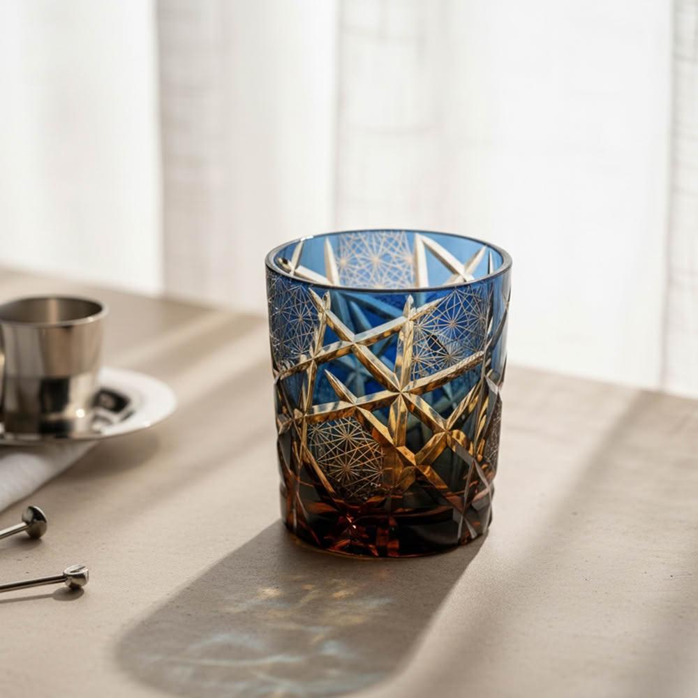 Bravomart日式江戶切子 星芒網紋手工切割威士忌杯 商務送禮 生日禮物 喬遷禮物