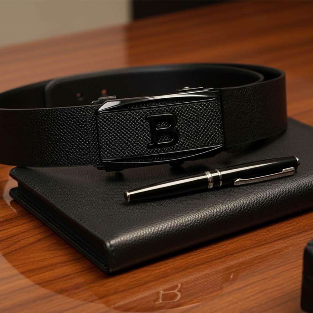 Bravomart字母B金屬叩頭真皮自動皮帶 - 黑色 商務休閒 真皮皮帶 生日禮物 男友禮物 父親節禮物