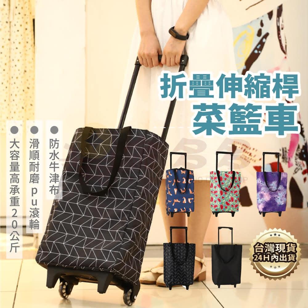 牛津布防水拉桿買菜車(雙層買菜車)耐重20公斤 菜籃車 買菜車 買菜推車 摺疊購物車 買菜拉車 拉車 貨物推車 折疊伸縮菜籃車