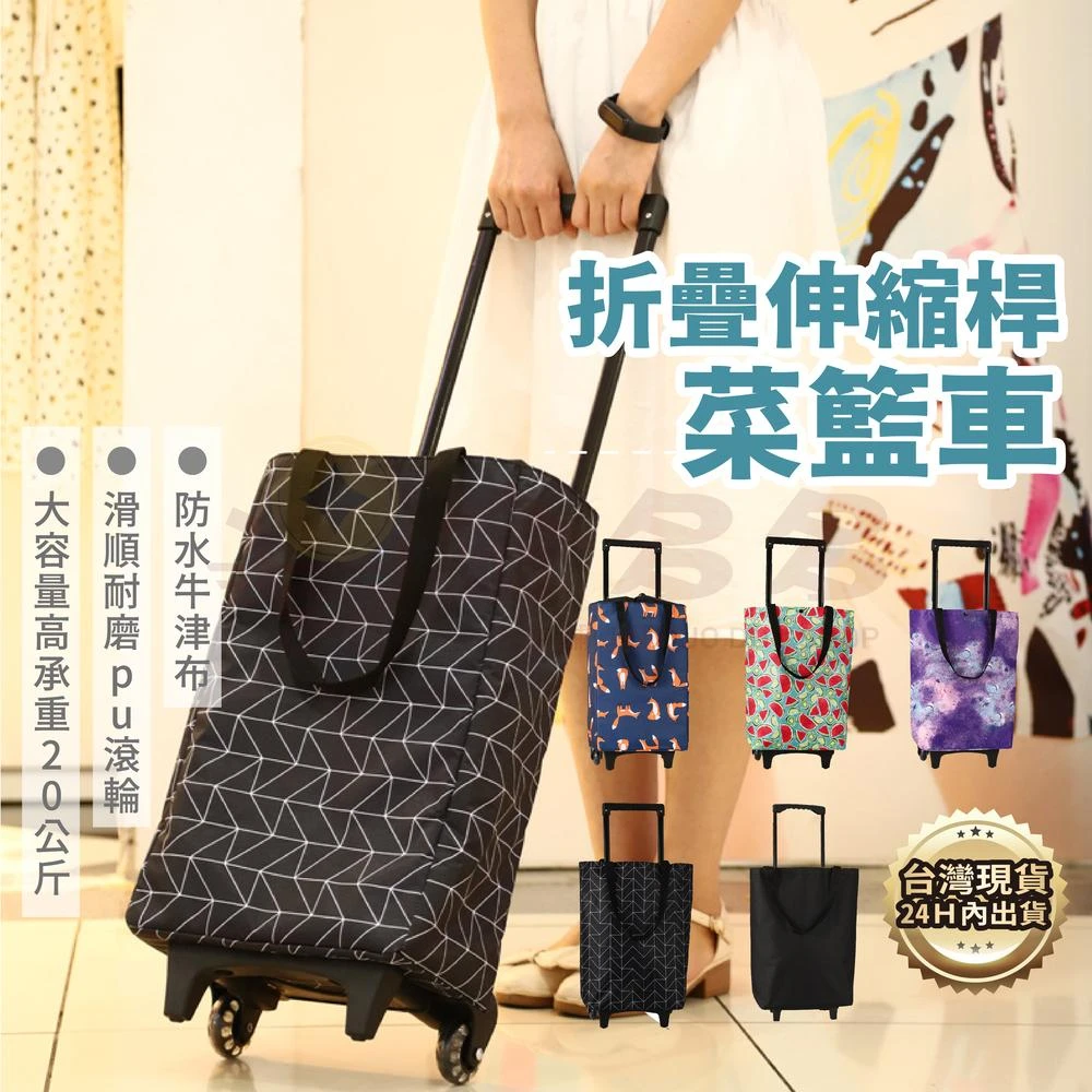 牛津布防水拉桿買菜車(雙層買菜車)耐重20公斤 菜籃車 買菜車 買菜推車 摺疊購物車 買菜拉車 拉車 貨物推車 折疊伸縮菜籃車