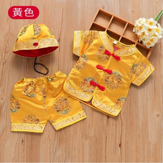 中式傳統抓周服飾(柔軟透氣好,耐磨耐穿。)抓周 抓周衣服 抓周服 寶寶肚兜 中式傳統抓周服飾 宮廷風短袖套裝 肚兜套裝 另有抓周道具